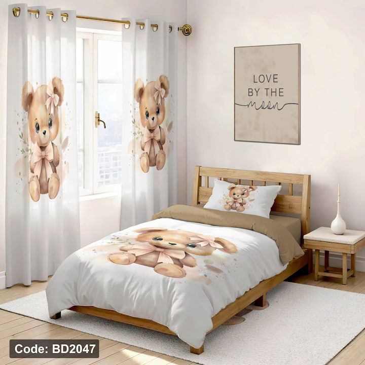 طراحی روتختی تدی کیوت به گونه‌ای انجام شده که حس لطافت، امنیت و صمیمیت را به اتاق خواب منتقل کند و در عین حال با چاپ باکیفیت و رنگ‌های ملایم، جلوه‌ای زیبا و ماندگار داشته باشد. این روتختی برای استفاده روزمره کاملا مناسب است و در کنار ظاهر فانتزی، از نظر دوخت و پارچه نیز استانداردهای لازم را دارد.